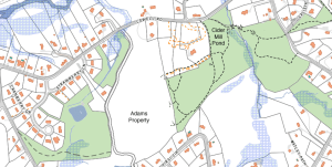 - Purchase of the Adams property, approximately 50 acres of open space property between the Cider Mill Conservation Land and Laughton Farm open space off Lowell Rd which would connect with approximately 56 acres of already conserved property. This is an important addition to the protection of part of the Stony Brook watershed which can impact our groundwater aquifers (used for our drinking water wells)