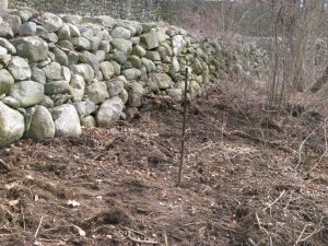 ​The photos are an example of what has been accomplished so far this year. A double treatment for poison ivy control and brush  trimming was necessary last fall before the actual wall restoration effort could start.​