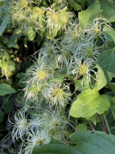 Virgin’s-bower (Clematis virginiana) growing at Grey Fox Conservation land, photo taken on 9/24/22, near the banks of Stony Brook in Westford. According to Native Plant Trust’s Go Botany, this beautiful native is the most common clematis in New England. The Cherokee made an infusion of virgin’s-bower with milkweed (Asclepias) to treat backache, as well as using it in ceremonial medicine to induce dreaming.