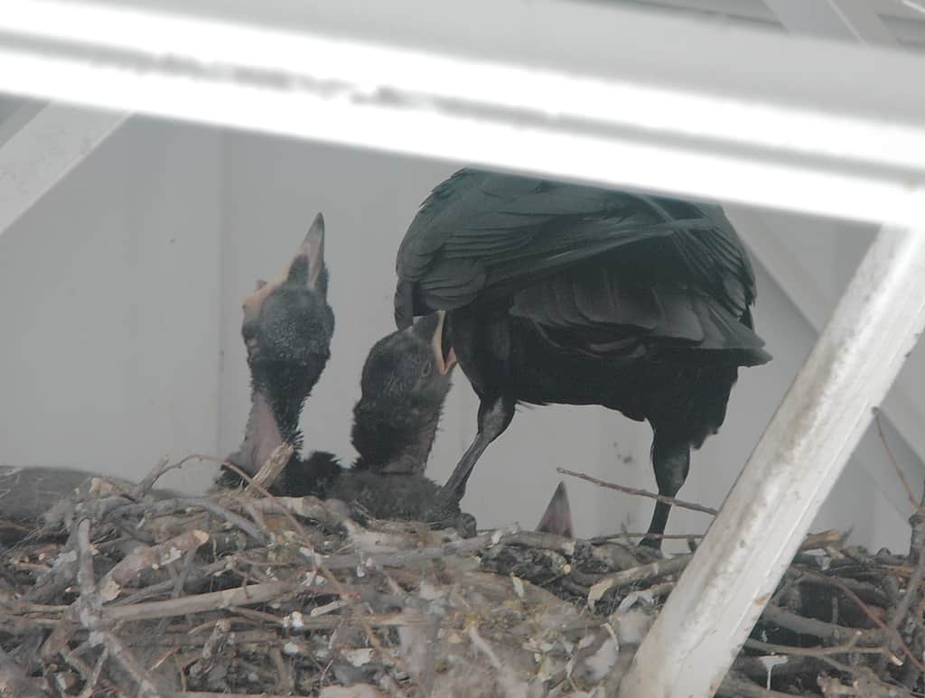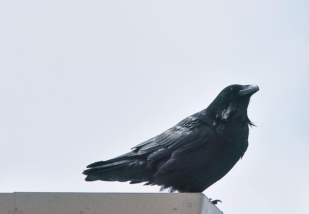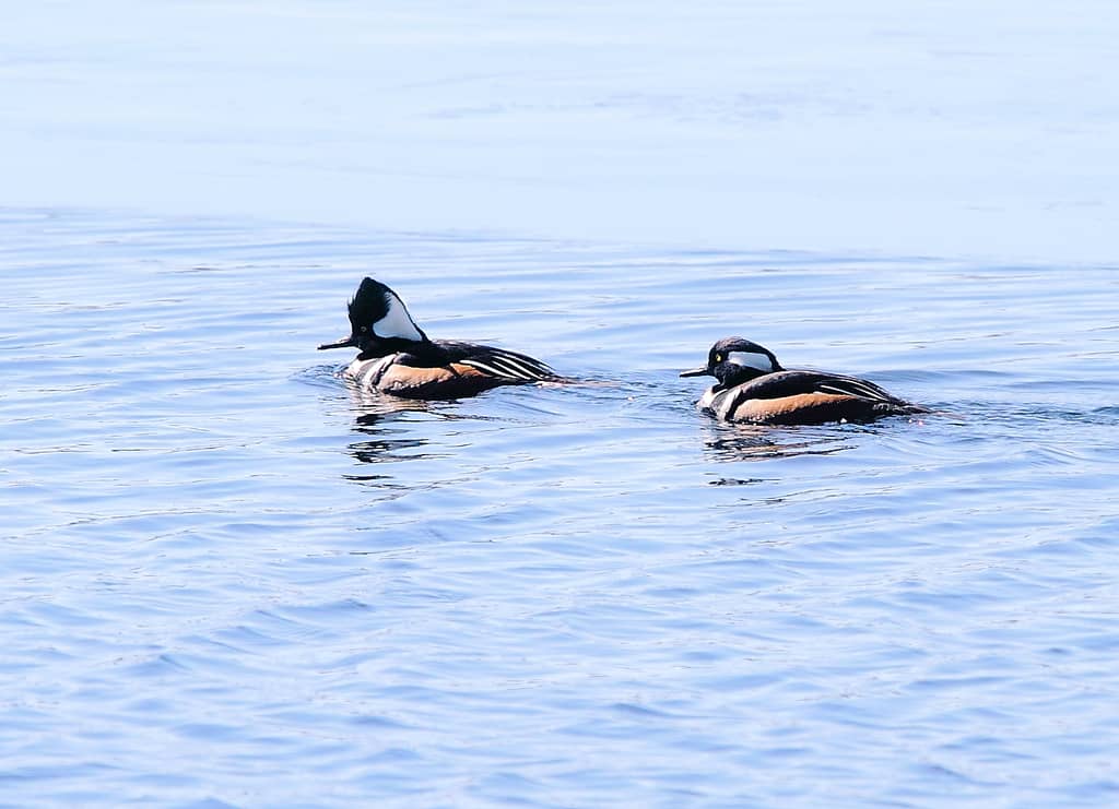 Nancy Eberiel, Depot St. April 16, a raven eating under my bird feeder. A hooded merganser on Stony Brook near Stone Arch Bridge.