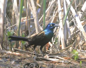The most surprising fact I have recently learned about Common Grackles, is that they are in decline. According to Cornell Lab of Ornithology and National Audubon, they are on the list of “Top Twenty Common Birds in Decline”. Mass Audubon’s breeding bird survey found that grackles are indeed in a steep decline in Massachusetts. Their numbers have declined 58% since 1966. The reason for the decline seems to be habitat loss. Common grackles nest both in wetlands and in tall trees. But they like to inhabit edges along clearings, near areas of human habitation. They especially thrive in areas surrounding agricultural fields. As field environment transitions into forest, the habitat they need is eliminated. Grackles do not frequent heavily forested areas. So while we complain about the many grackles at our feeders in the spring and summer, perhaps we should show them more respect. Some day they might be an uncommon bird to see in Massachusetts.